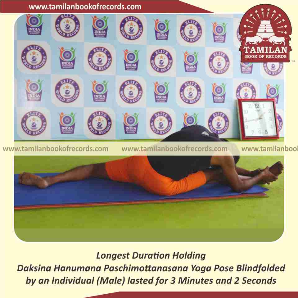 Longest Duration Holding Vama Hanumana Paschimottanasana Yoga Pose Blindfolded by an Individual (Male)