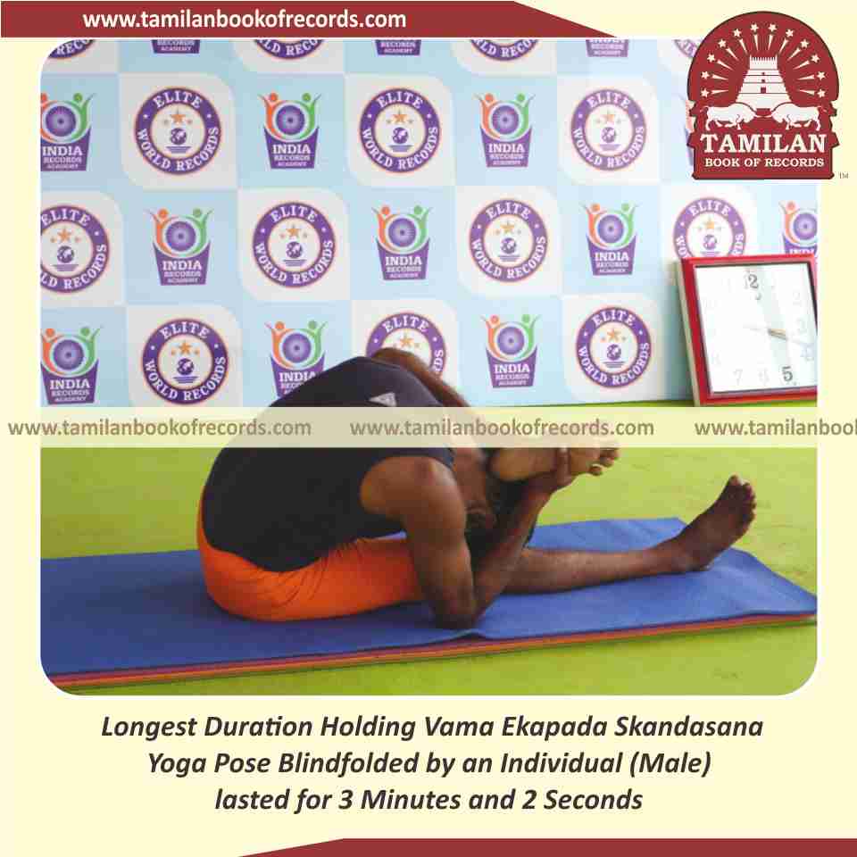 Longest Duration Holding Vama Ekapada Skandasana Yoga Pose Blindfolded by an Individual (Male)
