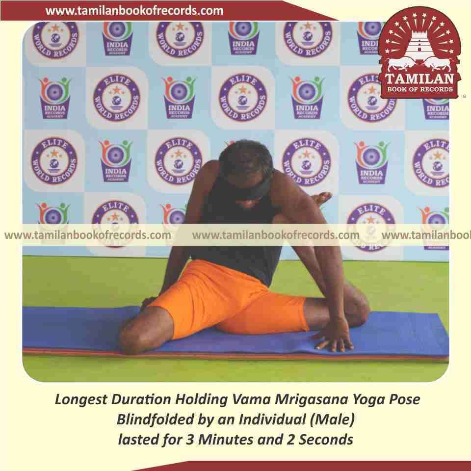 Longest Duration Holding Vama Mrigasana Yoga Pose Blindfolded by an Individual (Male)