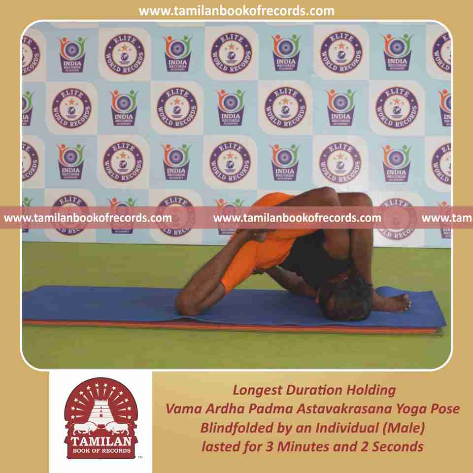 Longest Duration Holding Vama Ardha Padma Astavakrasana Yoga Pose Blindfolded by an Individual (Male)