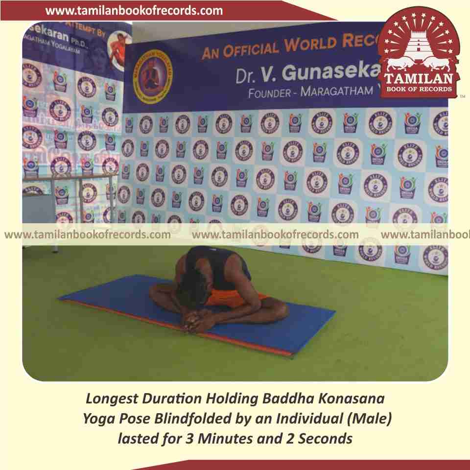 Longest Duration Holding Baddha Konasana Yoga Pose Blindfolded by an Individual (Male)