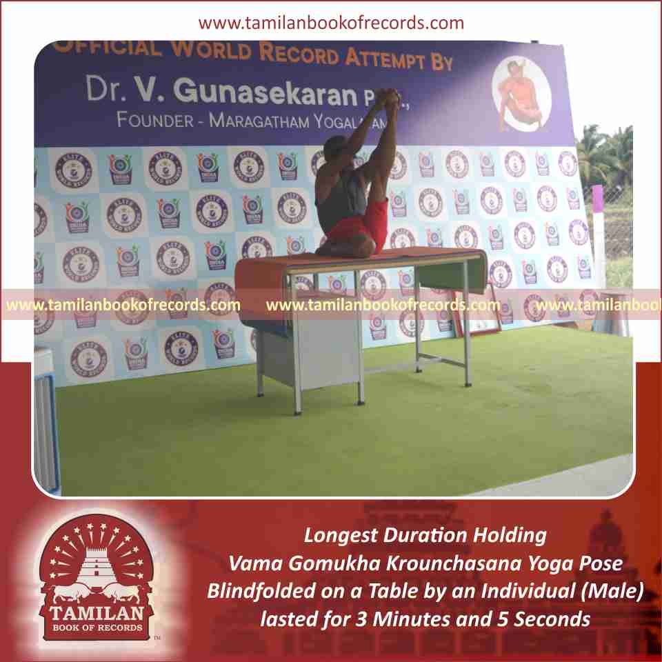 Longest Duration Holding Vama Gomukha Krounchasana Yoga Pose Blindfolded on a Table by an Individual (Male)
