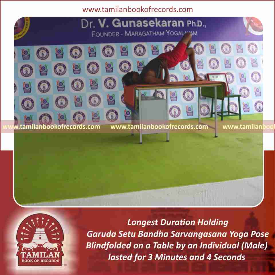 Longest Duration Holding Garuda Setu Bandha Sarvangasana Yoga Pose Blindfolded on a Table by an Individual (Male)
