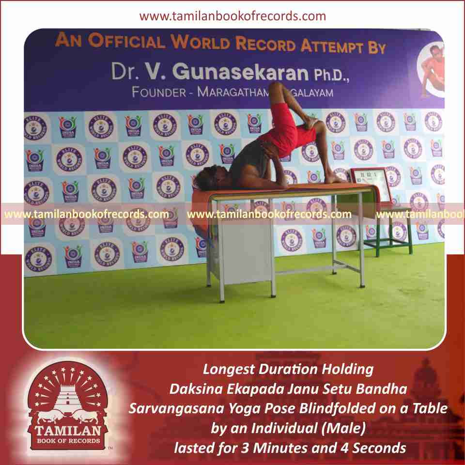 Longest Duration Holding Daksina Ekapada Janu Setu Bandha Sarvangasana Yoga Pose Blindfolded on a Table by an Individual (Male)