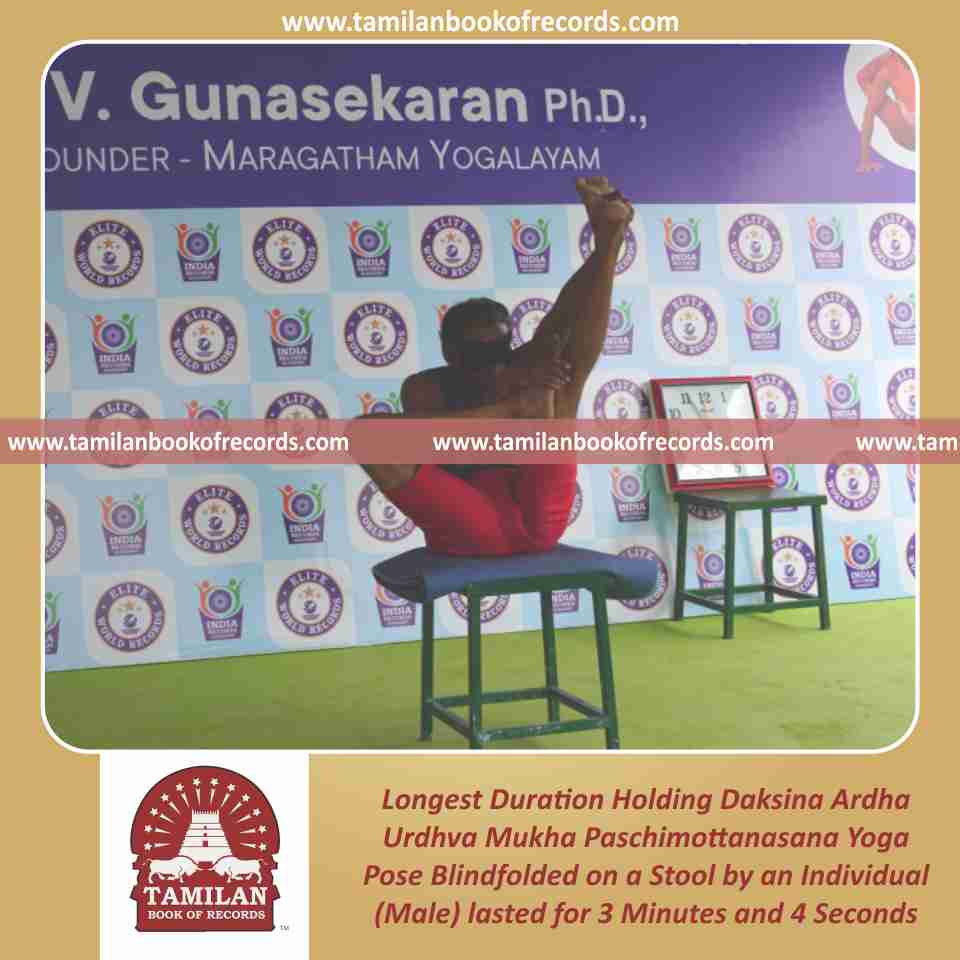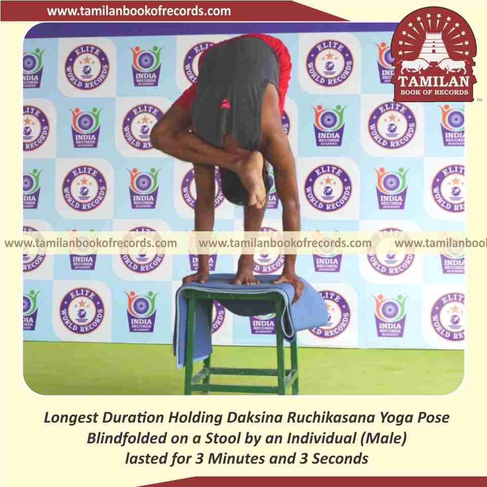 Longest Duration Holding Daksina Ruchikasana Yoga Pose Blindfolded on a Stool by an Individual (Male)