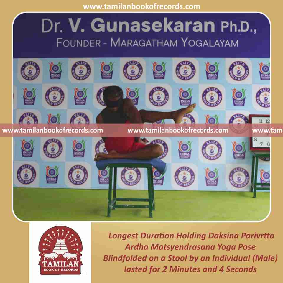 Longest Duration Holding Daksina Parivrtta Ardha Matsyendrasana Yoga Pose Blindfolded on a Stool by an Individual (Male)