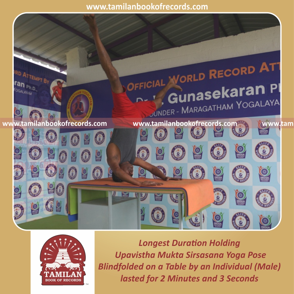 Longest Duration Holding Upavistha Mukta Sirsasana Yoga Pose Blindfolded on a Table by an Individual (Male)