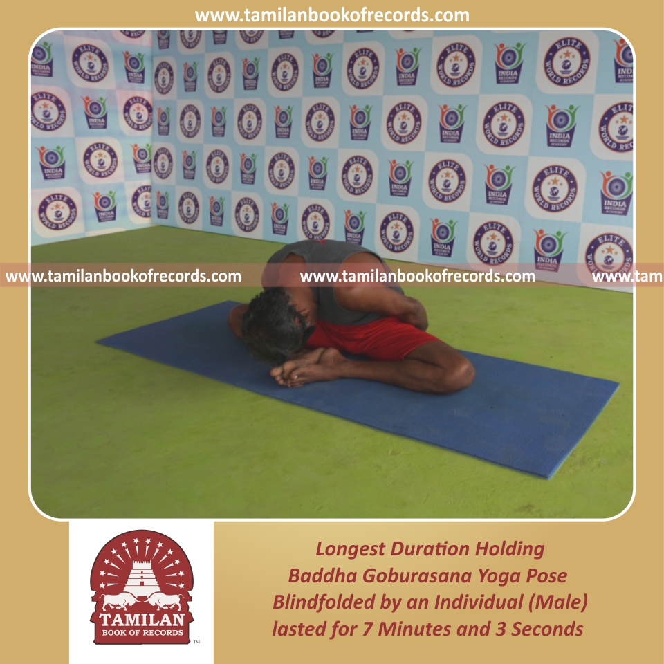 Longest Duration Holding Baddha Goburasana Yoga Pose Blindfolded by an Individual (Male)