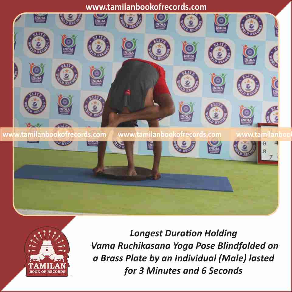 Longest Duration Holding Vama Ruchikasana Yoga Pose Blindfolded on a Brass Plate by an Individual (Male)