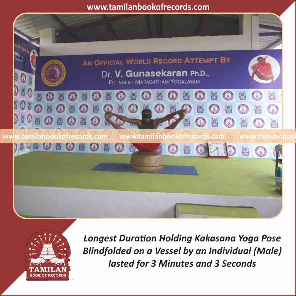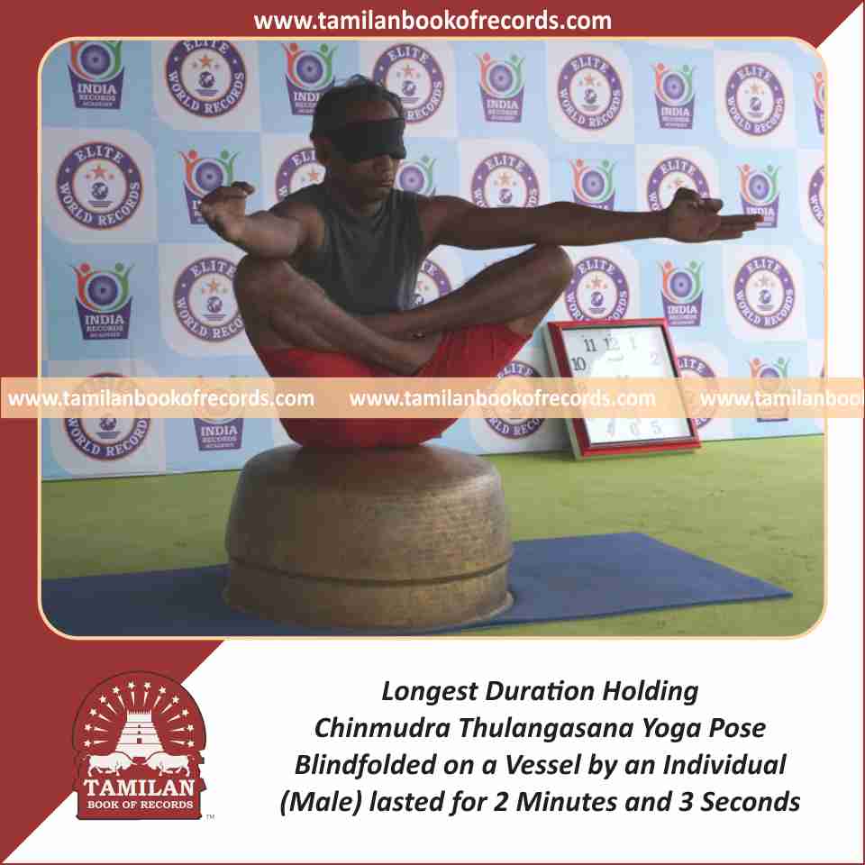 Longest Duration Holding Chinmudra Thulangasana Yoga Pose Blindfolded on a Vessel by an Individual (Male)