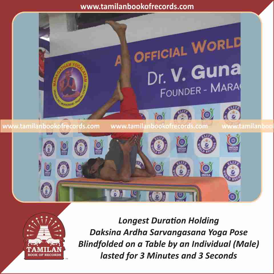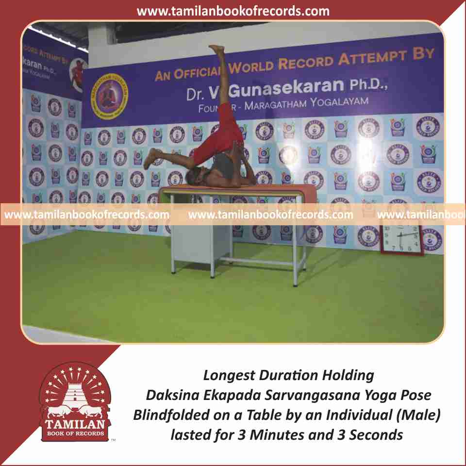 Longest Duration Holding Daksina Ekapada Sarvangasana Yoga Pose Blindfolded on a Table by an Individual (Male)