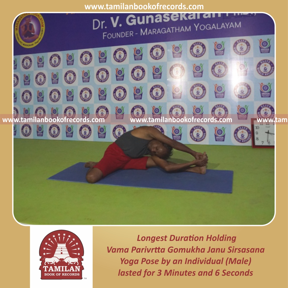 Longest Duration Holding Daksina Parivrtta Gomukha Janu Sirsasana Yoga Pose by an Individual (Male)