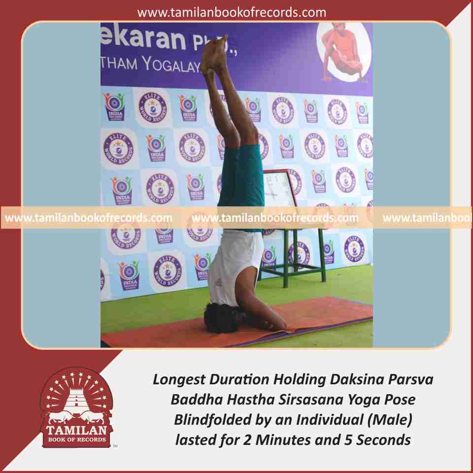 Longest Duration Holding Daksina Parsva Baddha Hastha Sirsasana Yoga Pose Blindfolded by an Individual (Male)