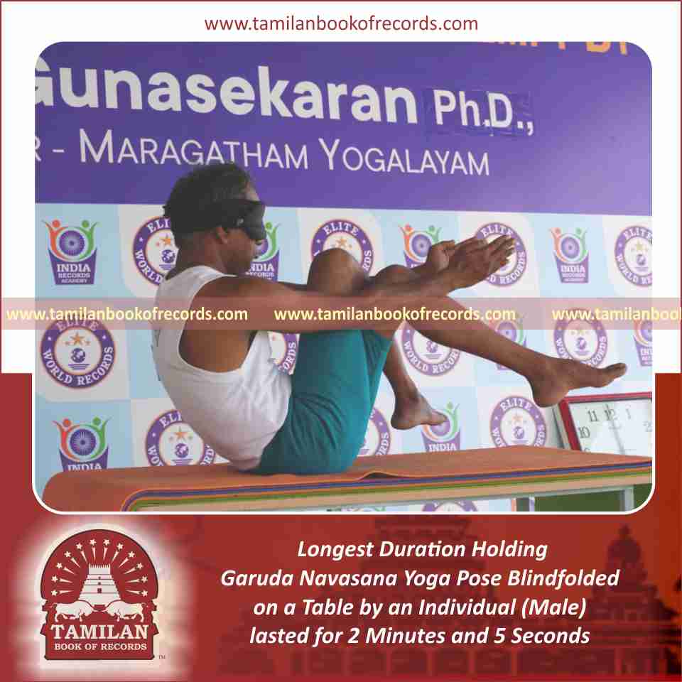 Longest Duration Holding Garuda Navasana Yoga Pose Blindfolded on a Table by an Individual (Male)