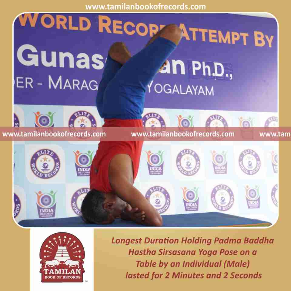 Longest Duration Holding Padma Baddha Hastha Sirsasana Yoga Pose on a Table by an Individual (Male)