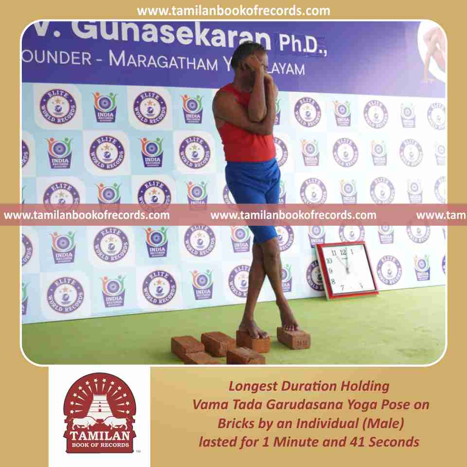 Longest Duration Holding Vama Tada Garudasana Yoga Pose on Bricks by an Individual (Male)