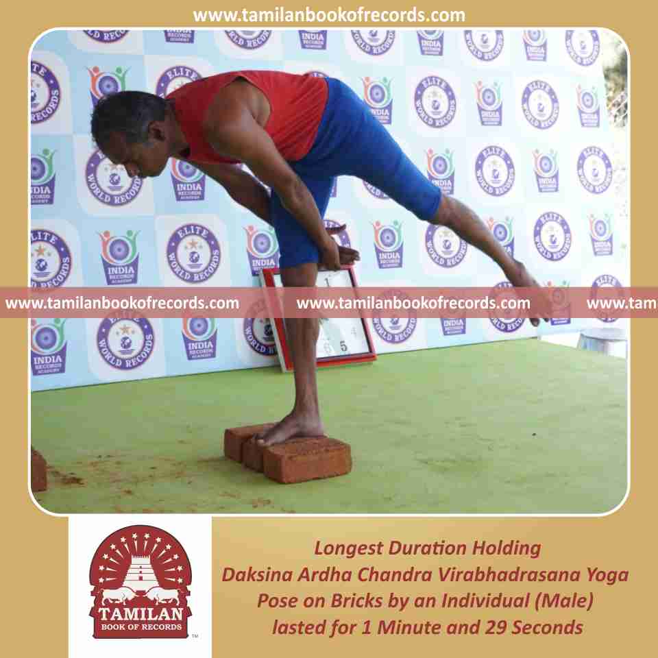 Longest Duration Holding Daksina Ardha Chandra Virabhadrasana Yoga Pose on Bricks by an Individual (Male)
