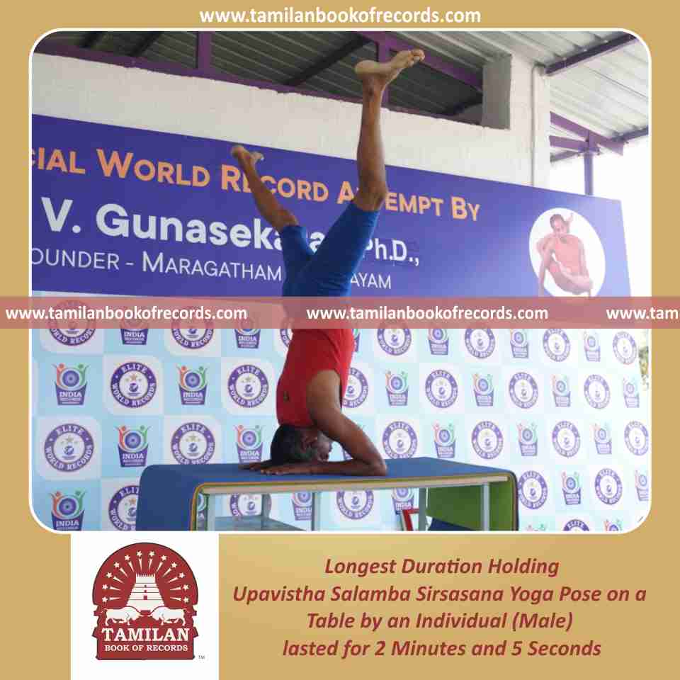 Longest Duration Holding Upavistha Salamba Sirsasana Yoga Pose on a Table by an Individual (Male)