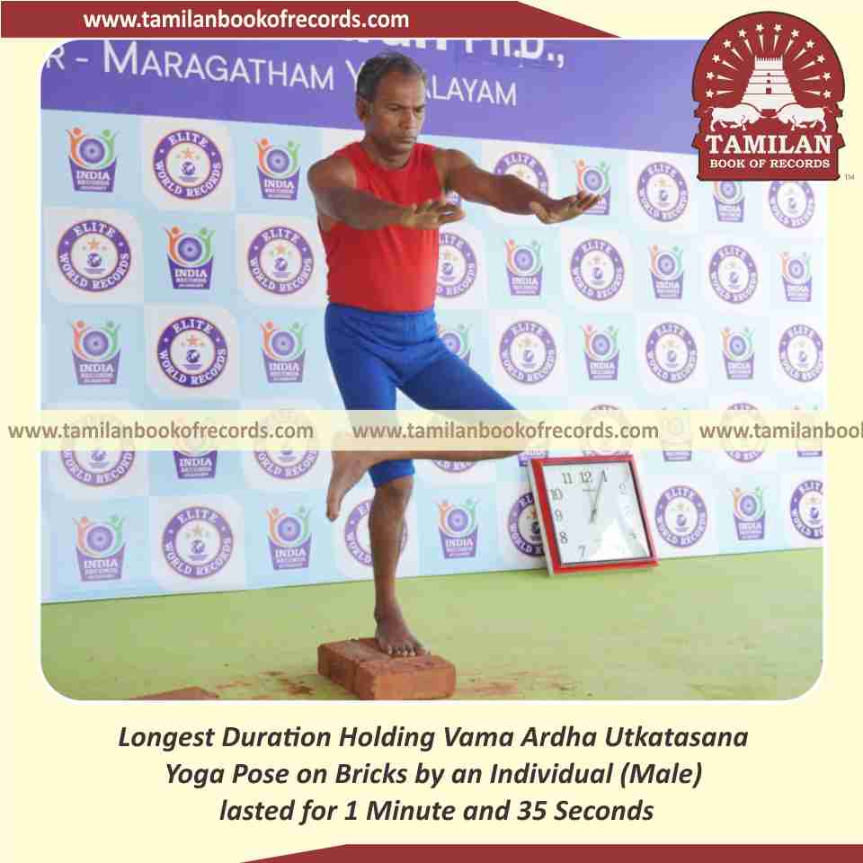 Longest Duration Holding Vama Ardha Utkatasana Yoga Pose on Bricks by an Individual (Male)