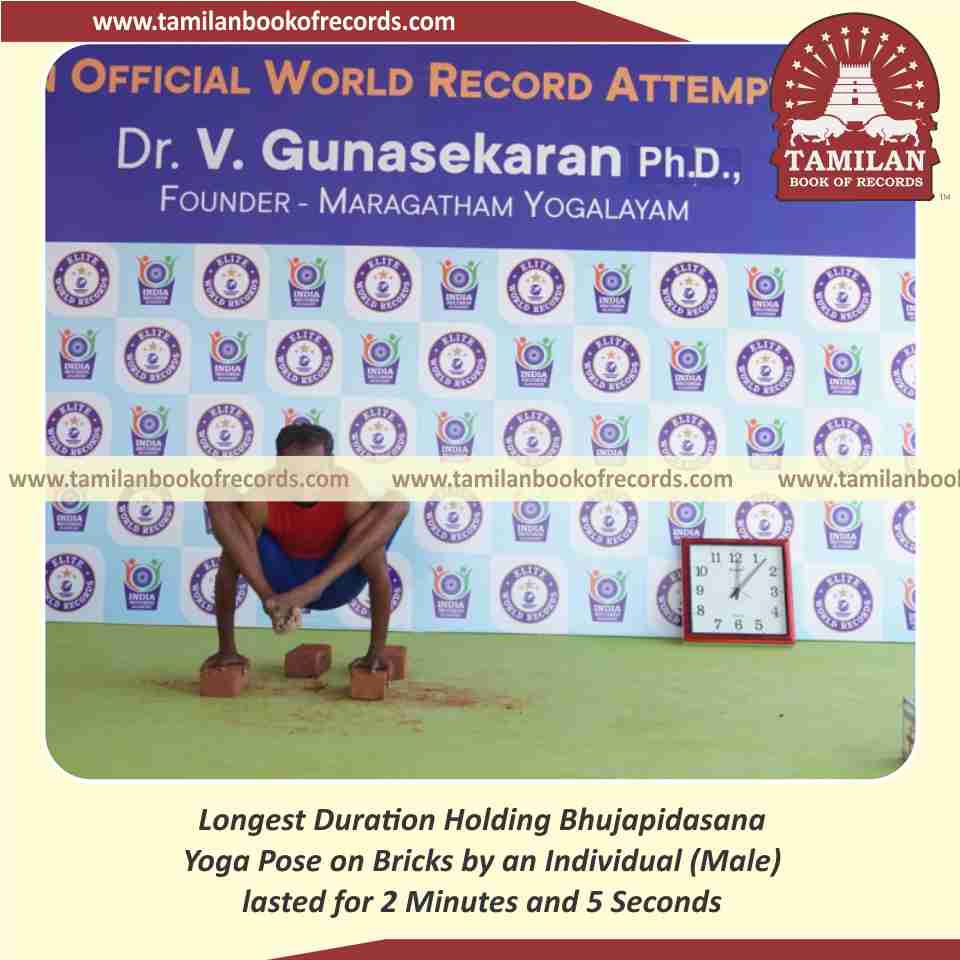 Longest Duration Holding Bhujapidasana Yoga Pose on Bricks by an Individual (Male)