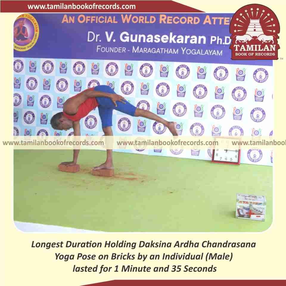 Longest Duration Holding Daksina Ardha Chandrasana Yoga Pose on Bricks by an Individual (Male)