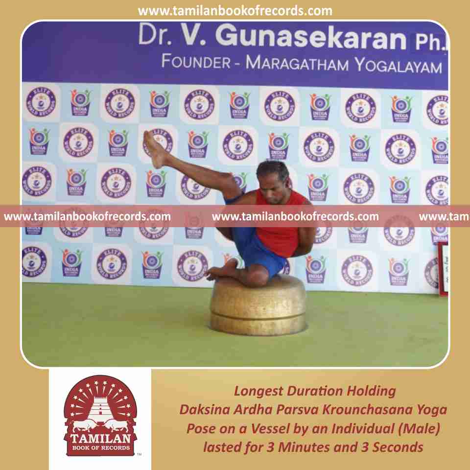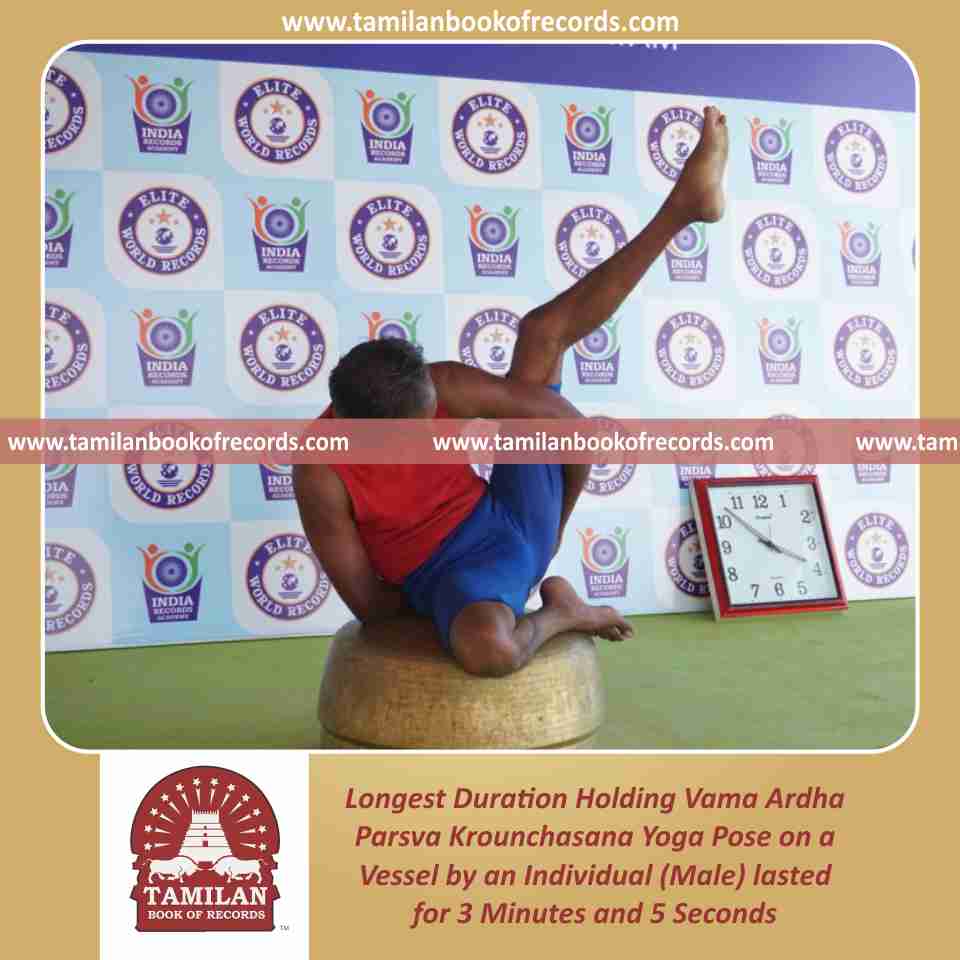Longest Duration Holding Daksina Ardha Parsva Krounchasana Yoga Pose on a Vessel by an Individual (Male)