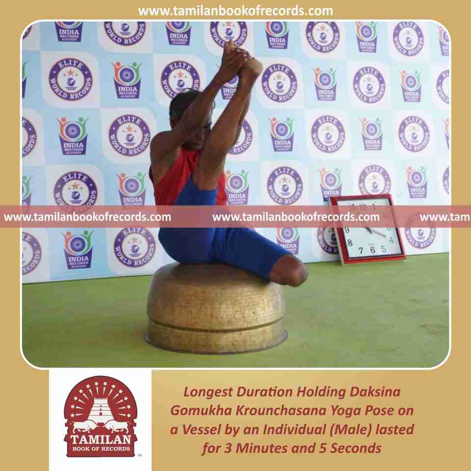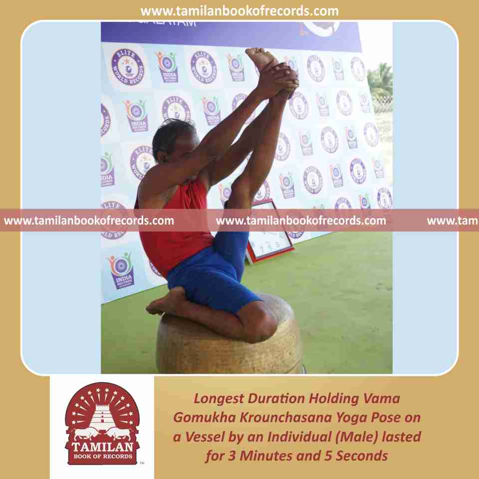 Longest Duration Holding Daksina Gomukha Krounchasana Yoga Pose on a Vessel by an Individual (Male)