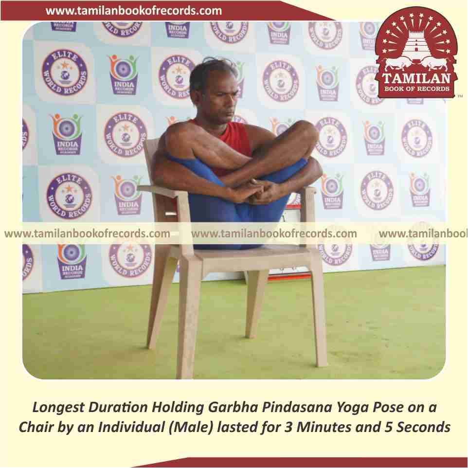 Longest Duration Holding Garbha Pindasana Yoga Pose on a Chair by an Individual (Male)