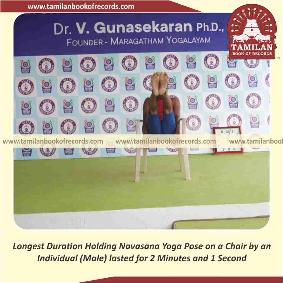 Longest Duration Holding Navasana Yoga Pose on a Chair by an Individual (Male)