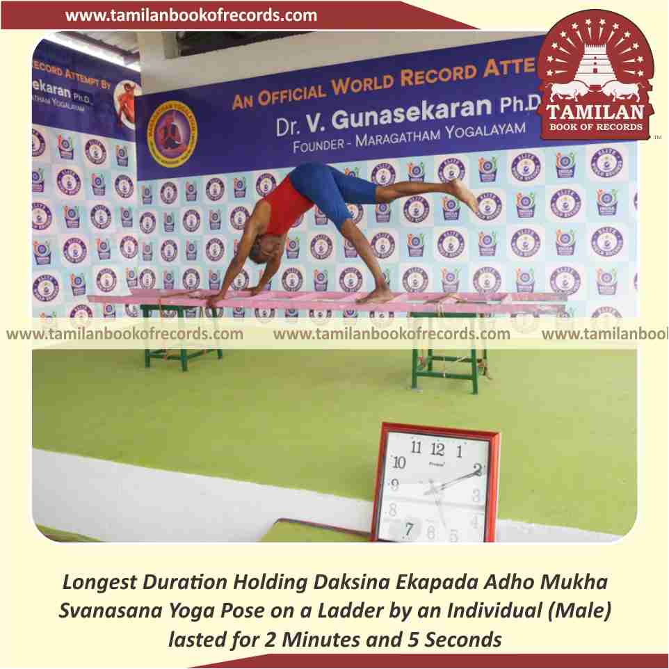 Longest Duration Holding Daksina Ekapada Adho Mukha Svanasana Yoga Pose on a Ladder by an Individual (Male)
