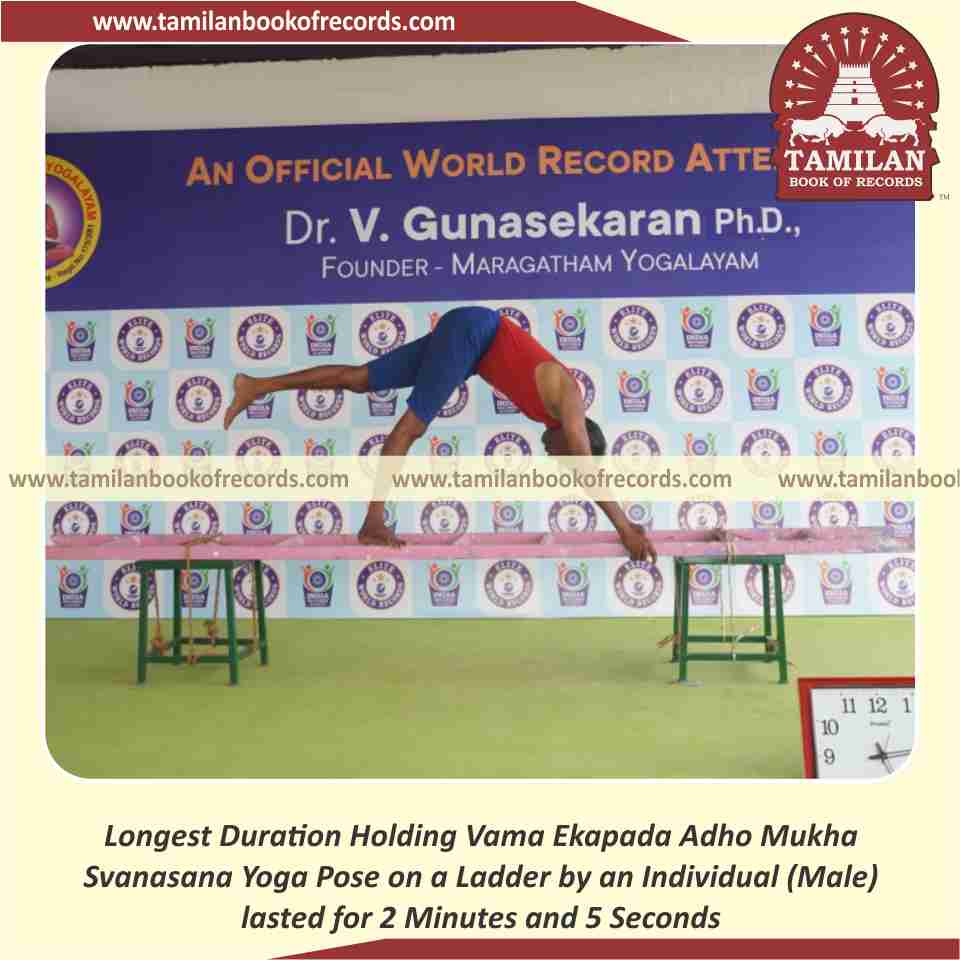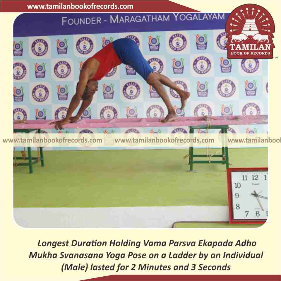 Longest Duration Holding Vama Ekapada Adho Mukha Svanasana Yoga Pose on a Ladder by an Individual (Male)