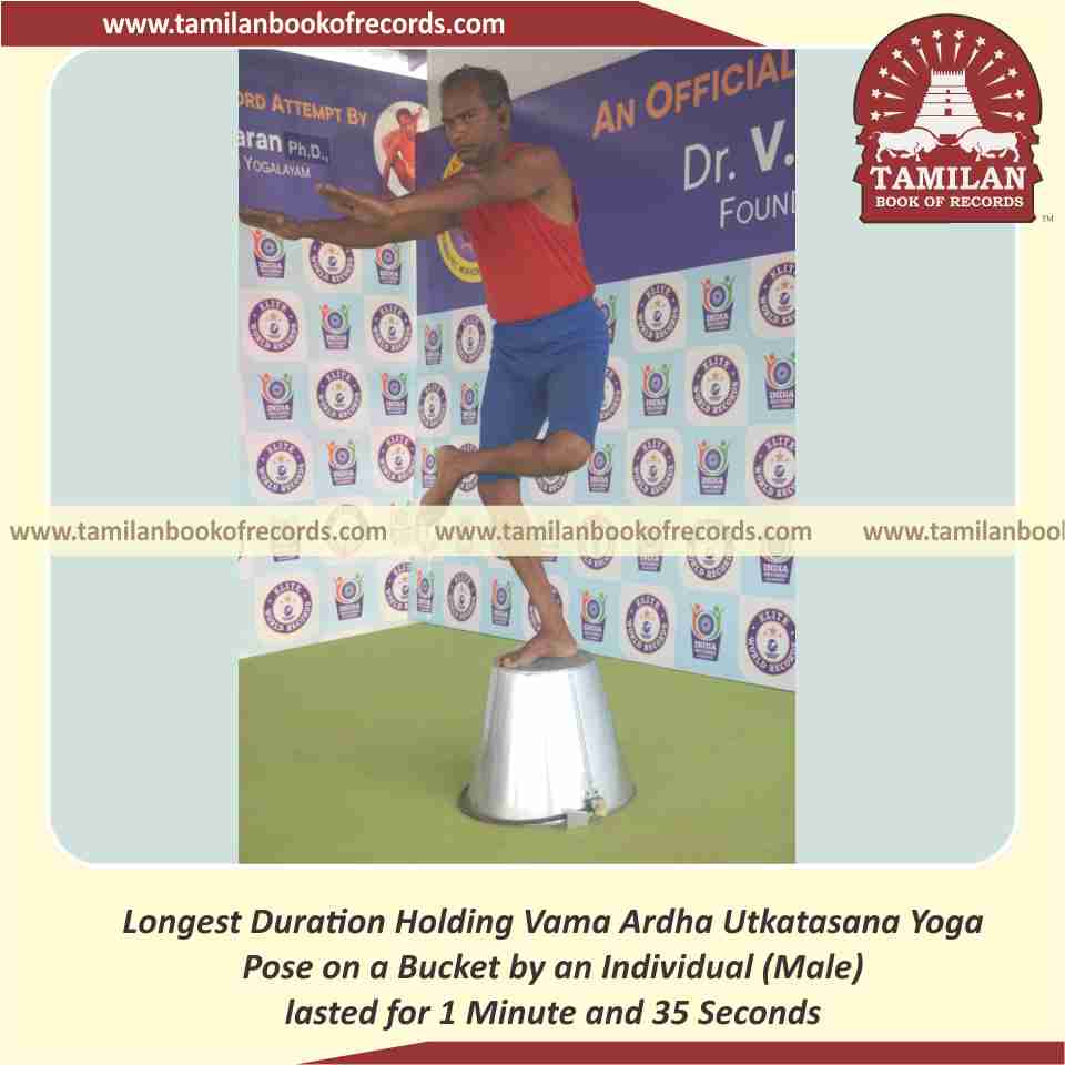 Longest Duration Holding Vama Ardha Utkatasana Yoga Pose on a Bucket by an Individual (Male)