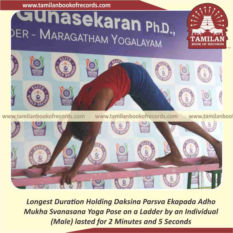 Longest Duration Holding Daksina Parsva Ekapada Adho Mukha Svanasana Yoga Pose on a Ladder by an Individual (Male)