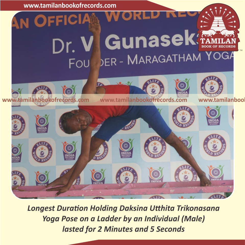 Longest Duration Holding Daksina Utthita Trikonasana Yoga Pose on a Ladder by an Individual (Male)