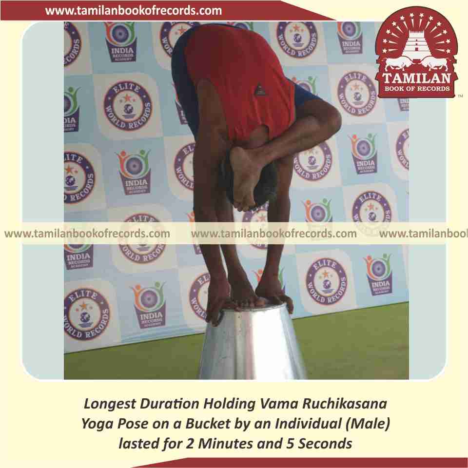 Longest Duration Holding Vama Ruchikasana Yoga Pose on a Bucket by an Individual (Male)