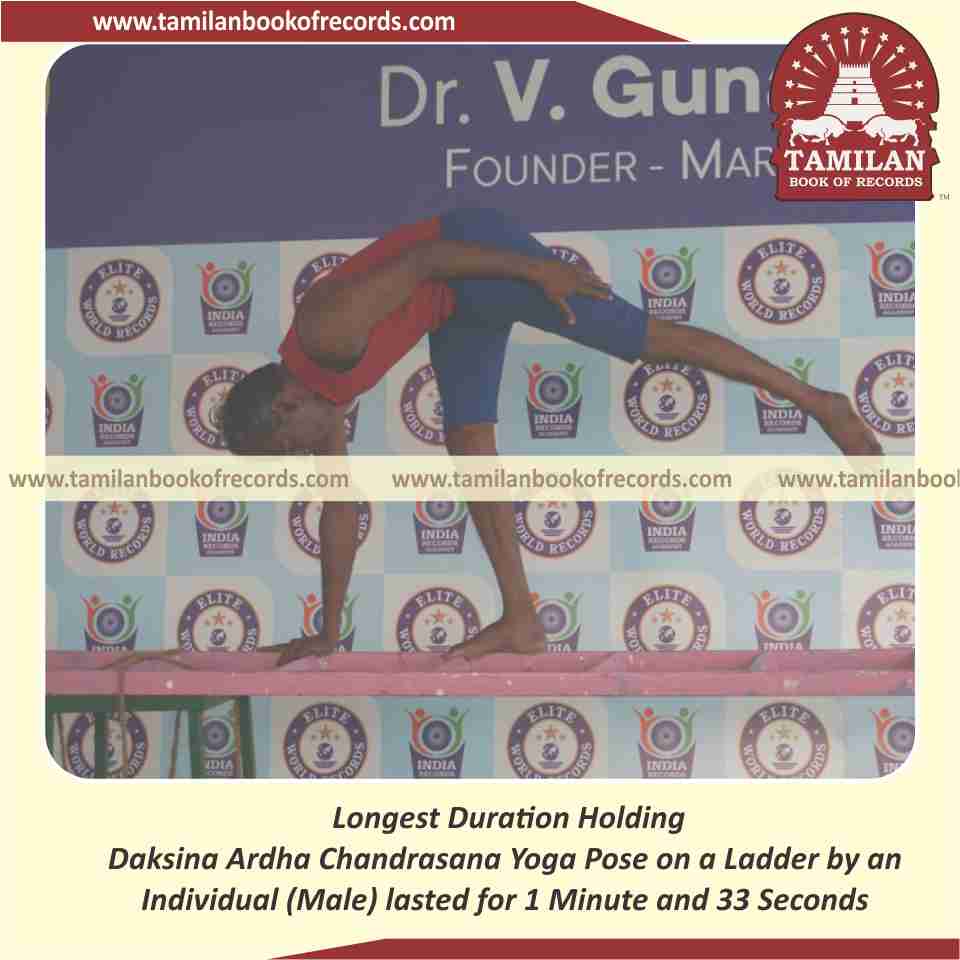 Longest Duration Holding Daksina Ardha Chandrasana Yoga Pose on a Ladder by an Individual (Male)