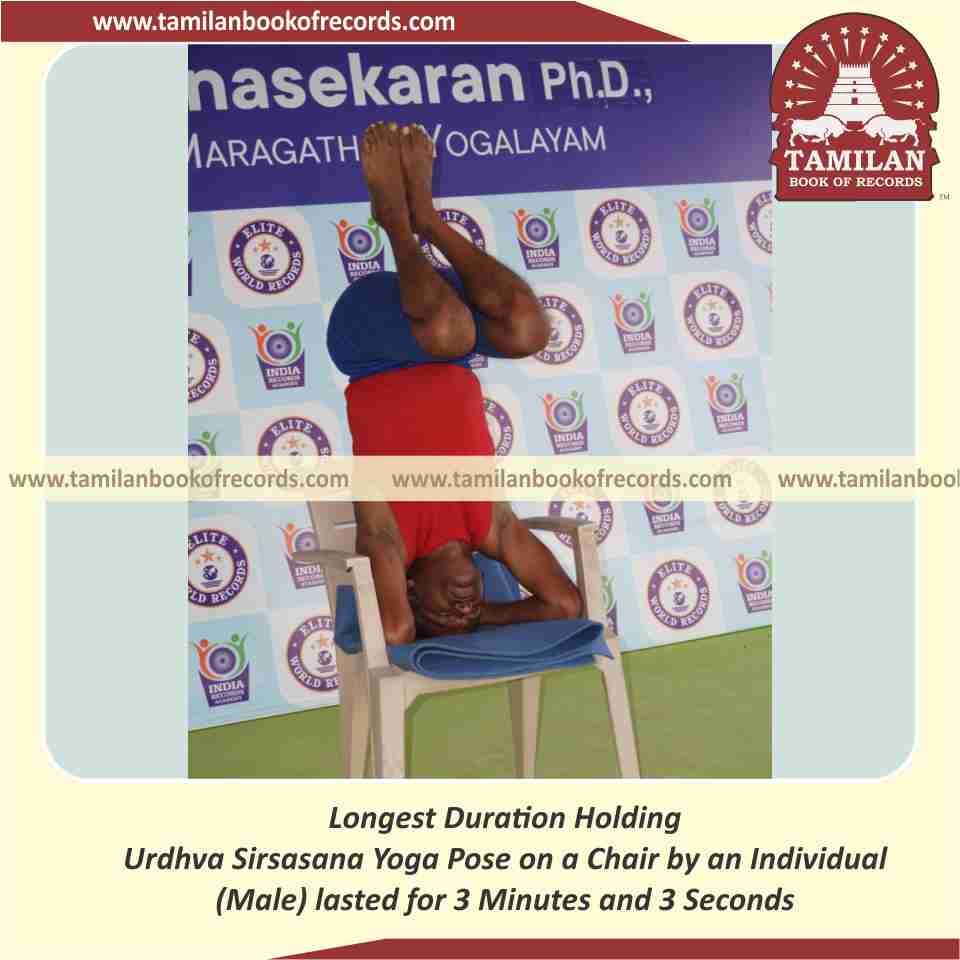 Longest Duration Holding Urdhva Sirsasana Yoga Pose on a Chair by an Individual (Male)