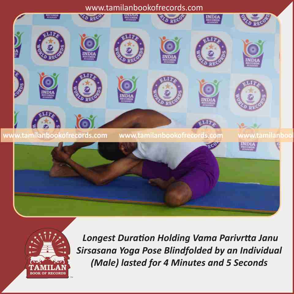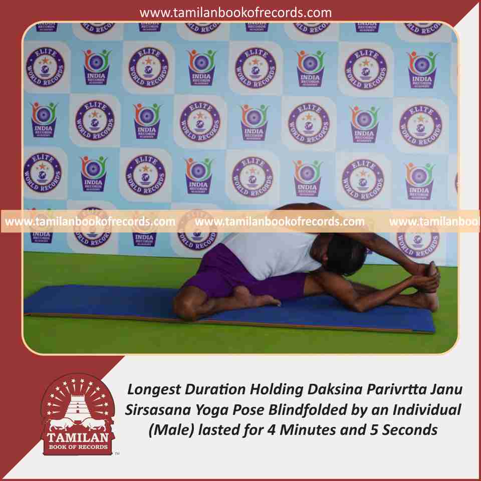 Longest Duration Holding Daksina Parivrtta Janu Sirsasana Yoga Pose Blindfolded by an Individual (Male)