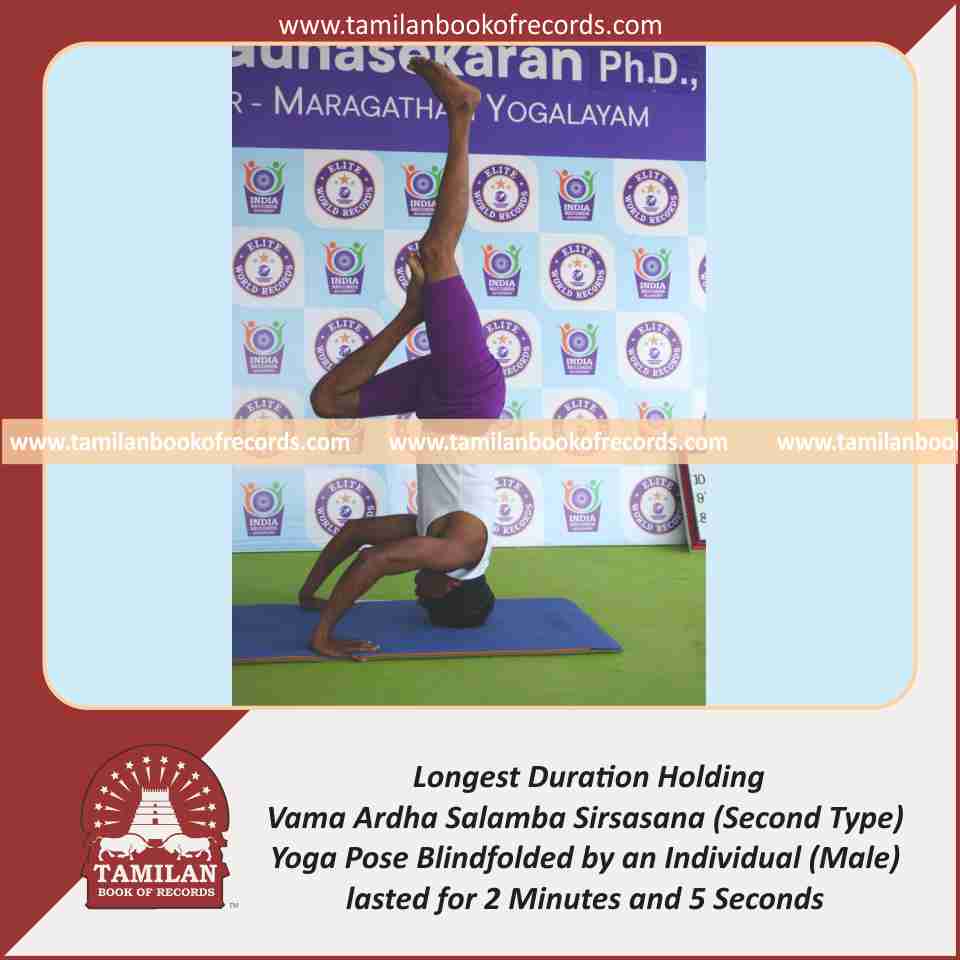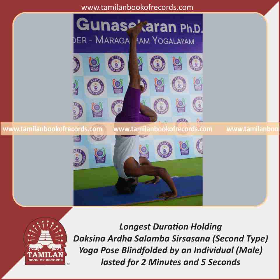 Longest Duration Holding Daksina Ardha Salamba Sirsasana (Second Type) Yoga Pose Blindfolded by an Individual (Male)