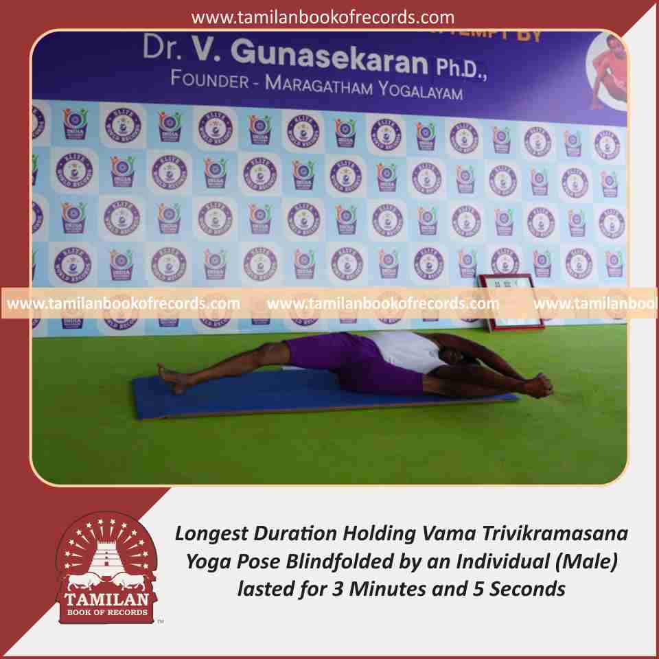 Longest Duration Holding Vama Trivikramasana Yoga Pose Blindfolded by an Individual (Male)