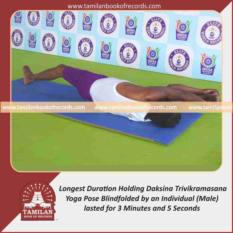 Longest Duration Holding Daksina Trivikramasana Yoga Pose Blindfolded by an Individual (Male)
