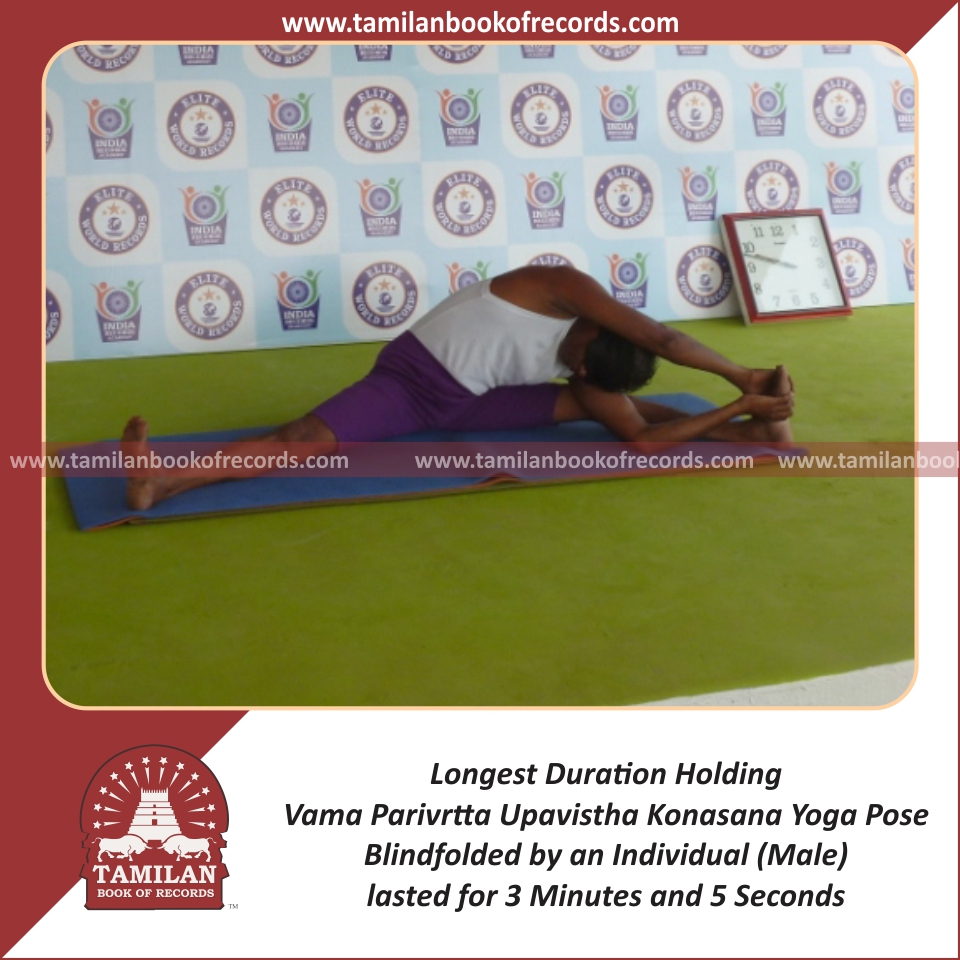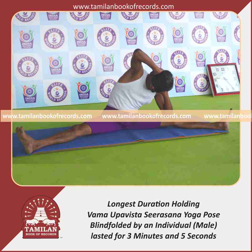Longest Duration Holding Vama Upavista Seerasana Yoga Pose Blindfolded by an Individual (Male)