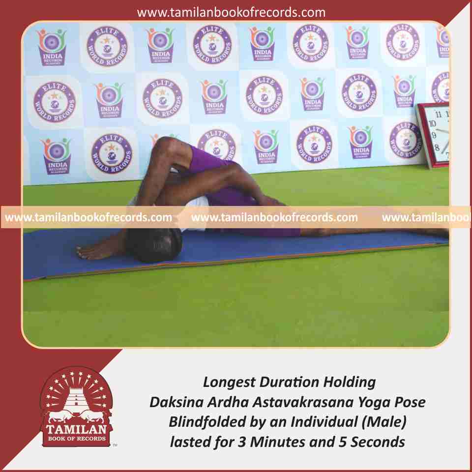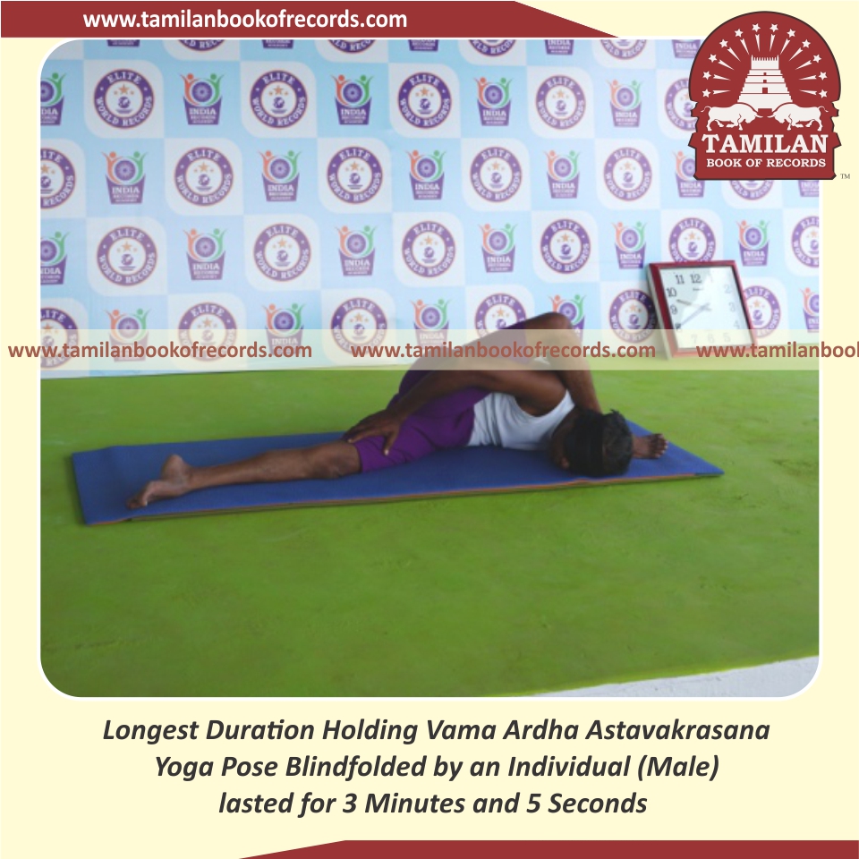 Longest Duration Holding Vama Ardha Astavakrasana Yoga Pose Blindfolded by an Individual (Male)