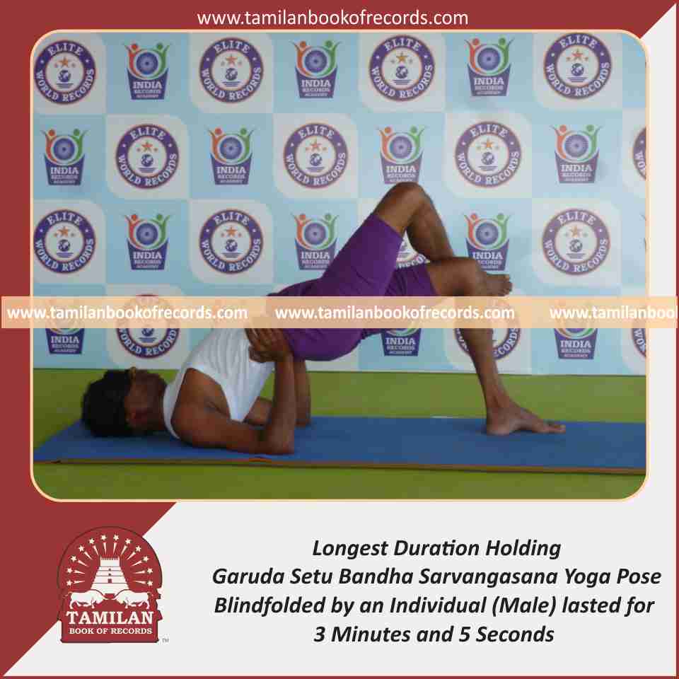 Longest Duration Holding Garuda Setu Bandha Sarvangasana Yoga Pose Blindfolded by an Individual (Male)