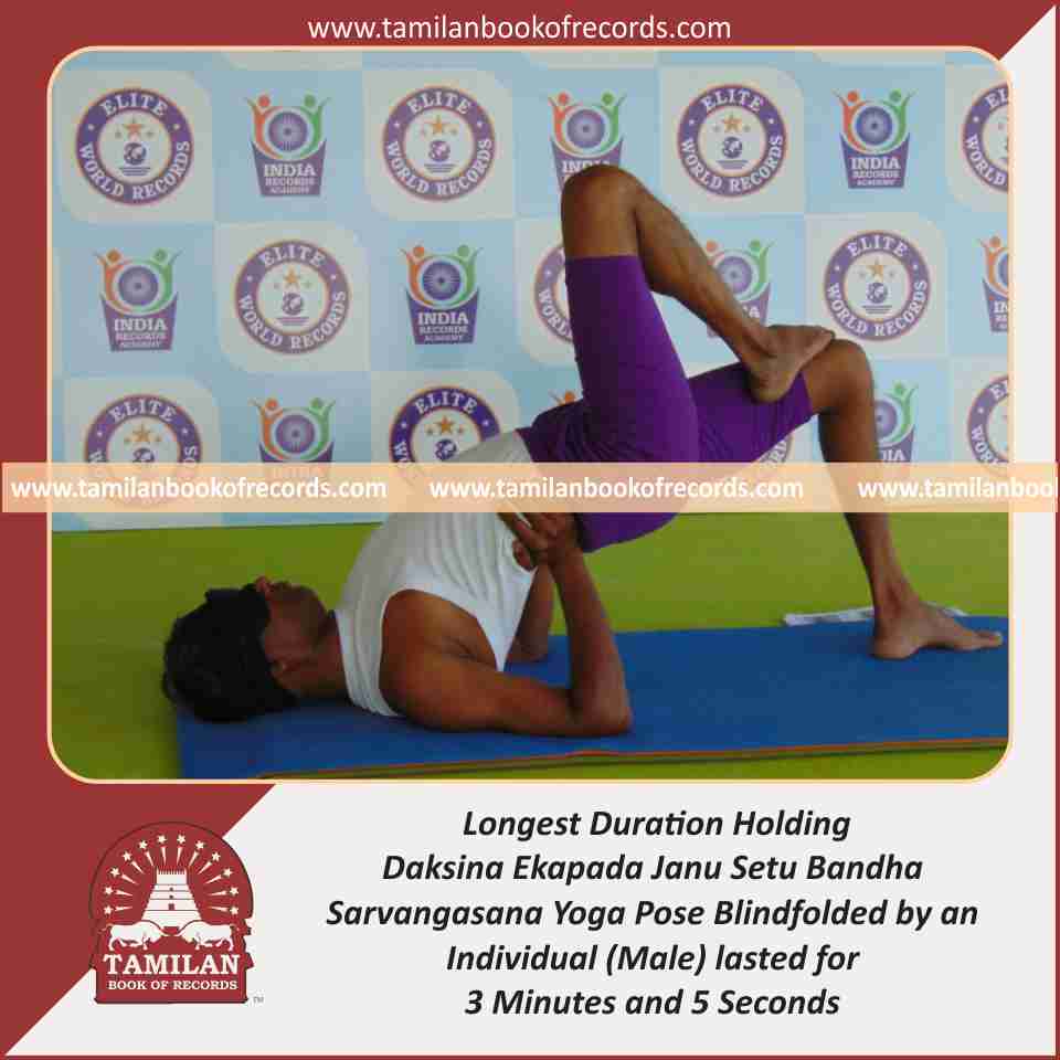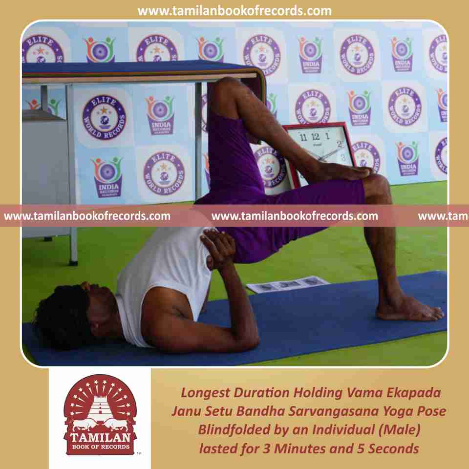 Longest Duration Holding Vama Ekapada Janu Setu Bandha Sarvangasana Yoga Pose Blindfolded by an Individual (Male)