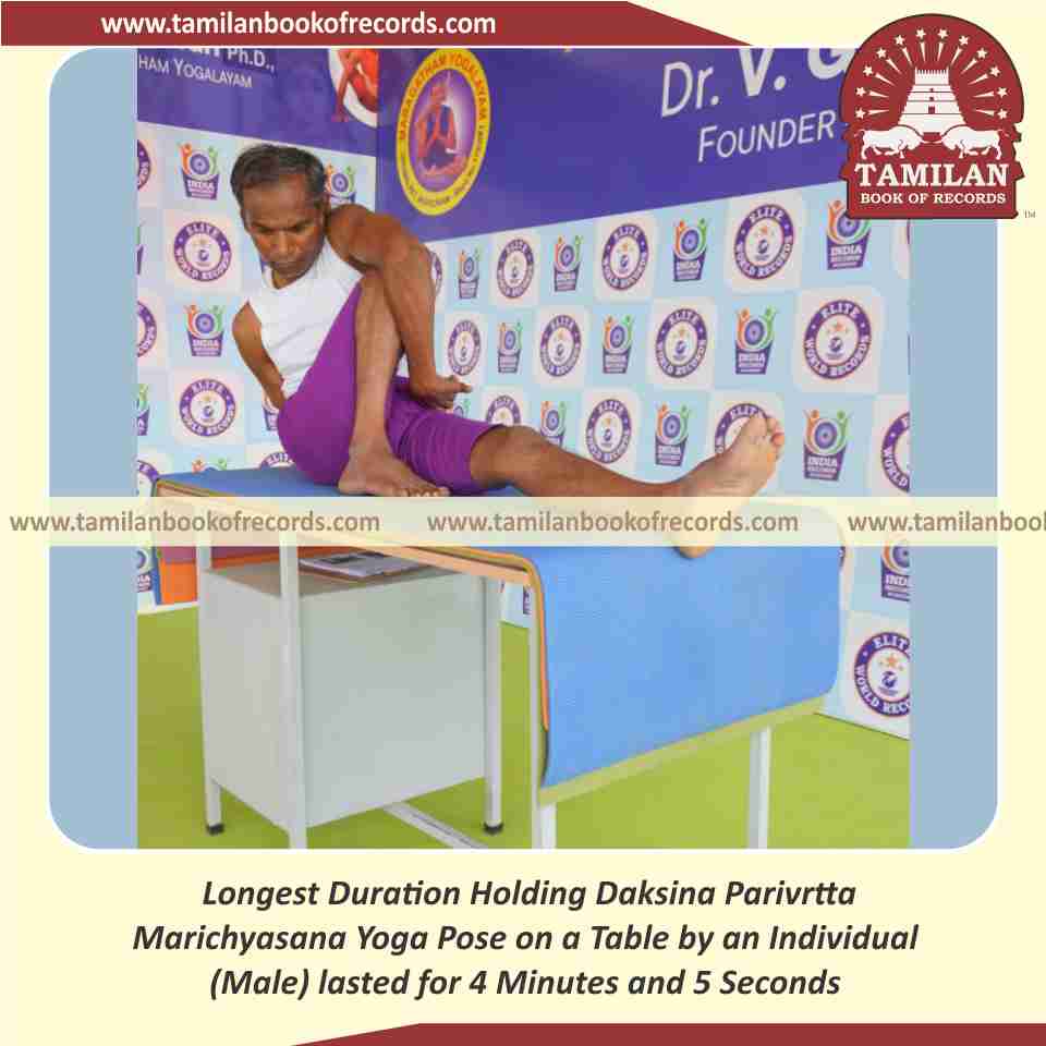 Longest Duration Holding Daksina Parivrtta Marichyasana Yoga Pose on a Table by an Individual (Male)