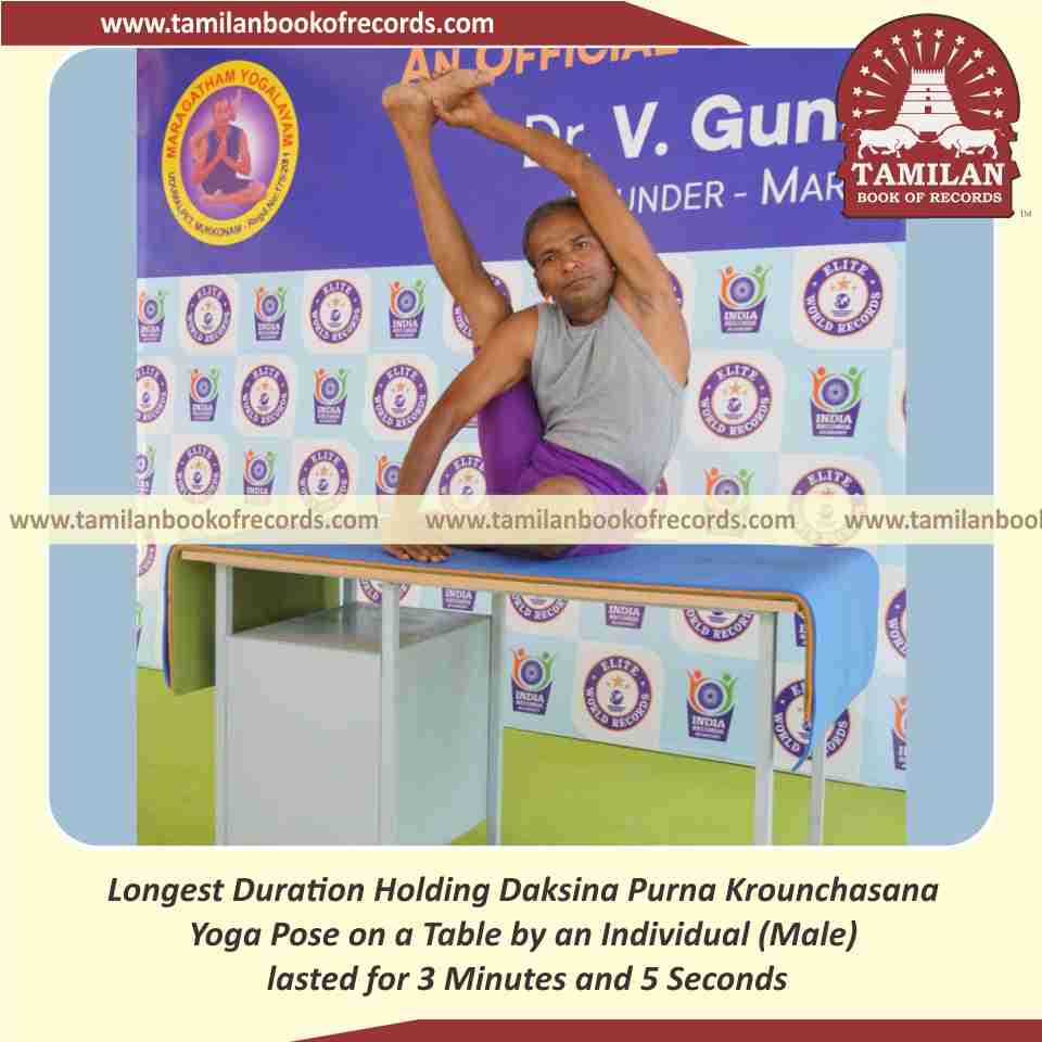 Longest Duration Holding Vama Purna Krounchasana Yoga Pose on a Table by an Individual (Male)