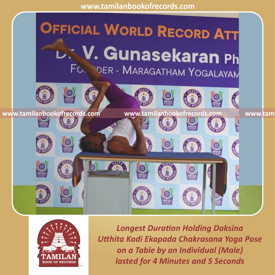 Longest Duration Holding Daksina Utthita Kadi Ekapada Chakrasana Yoga Pose on a Table by an Individual (Male)