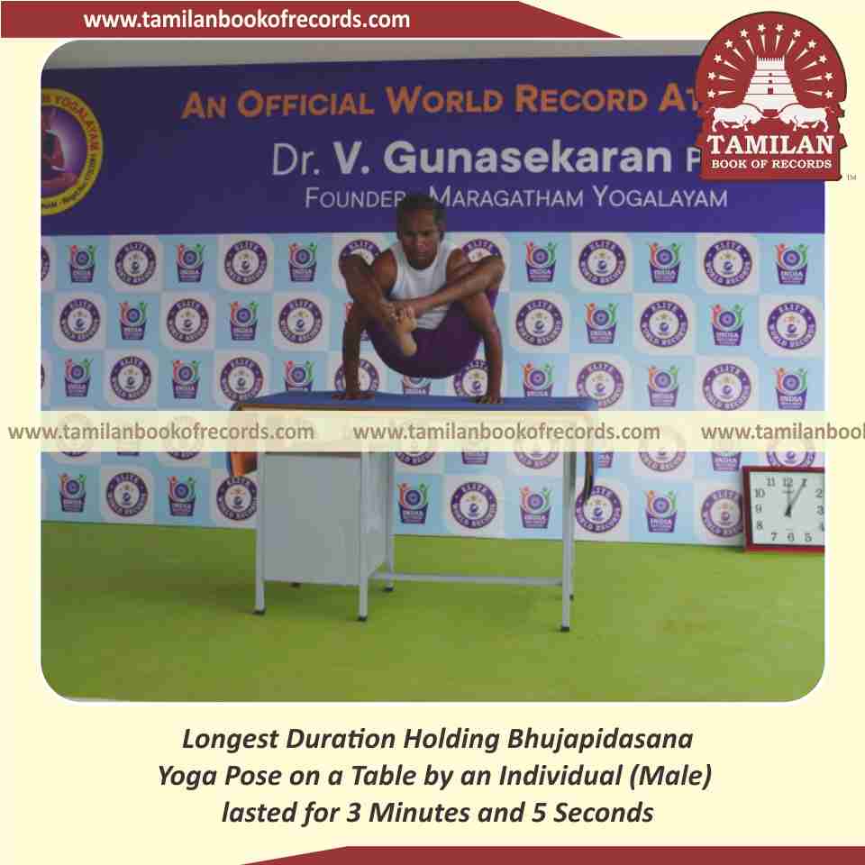 Longest Duration Holding Bhujapidasana Yoga Pose on a Table by an Individual (Male)