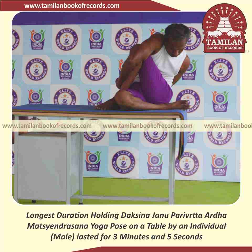Longest Duration Holding Daksina Parivrtta Ardha Matsyendrasana Yoga Pose on a Table by an Individual (Male)